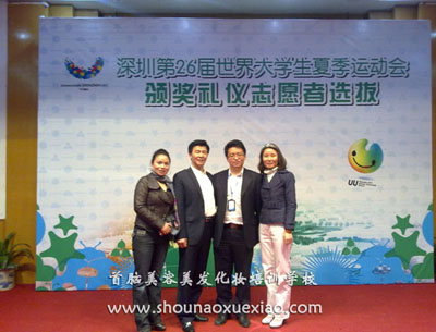 首腦學(xué)校美容老師王琦以評委身份出席了深圳大運會頒獎禮