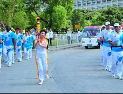 火炬?zhèn)鬟f世界大運圣火,首腦發(fā)揚中國造型藝術(shù)