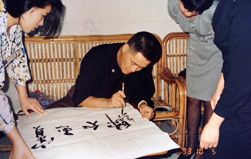 1992年10月8日,牡丹迎來了奧運(yùn)健將鄧亞萍和她的隊(duì)友們,高穎董事長攜牡丹全體員工與奧運(yùn)健將兒們合影留念。