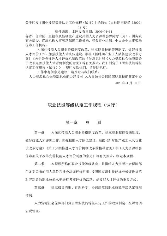 國(guó)家人力資源部社會(huì)評(píng)價(jià)組織工作規(guī)范文件