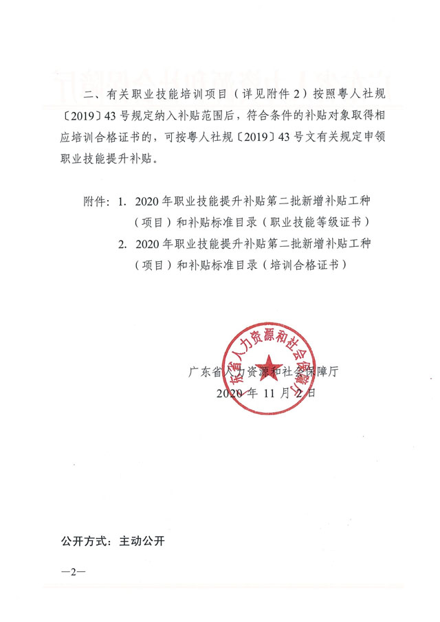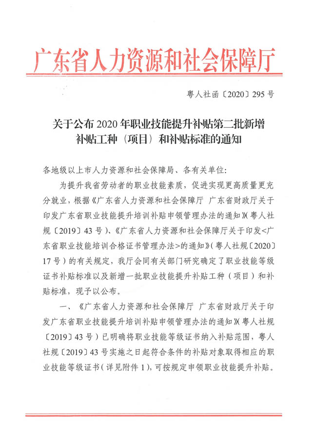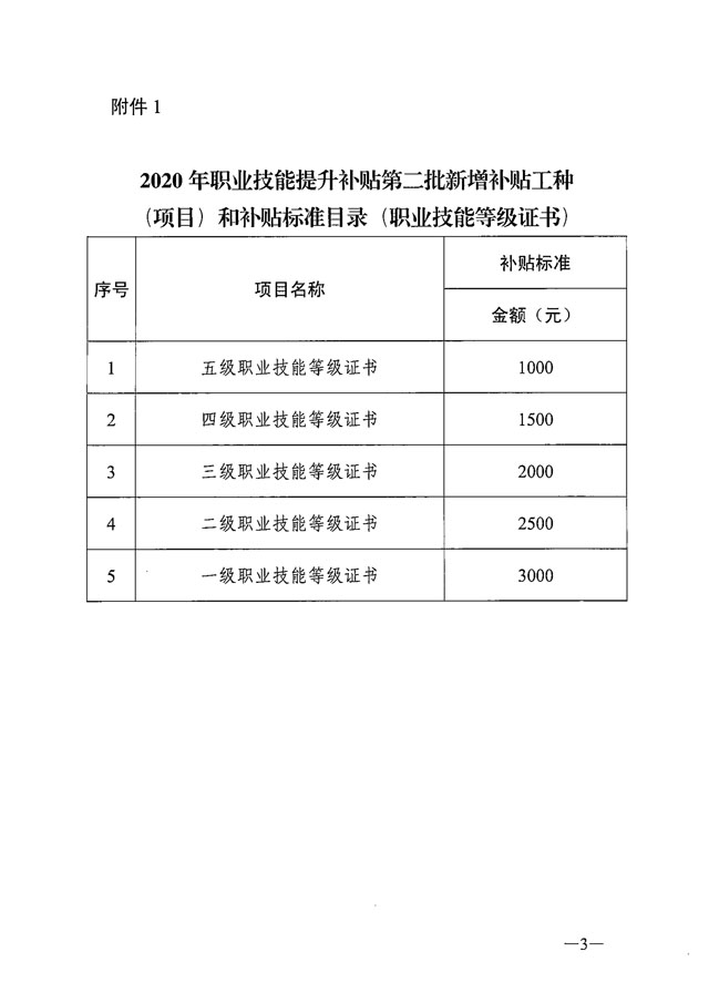 關(guān)于公布2020年職業(yè)技能提升補(bǔ)貼第二批新增補(bǔ)貼工種(項(xiàng)目)和補(bǔ)貼標(biāo)準(zhǔn)的通知
