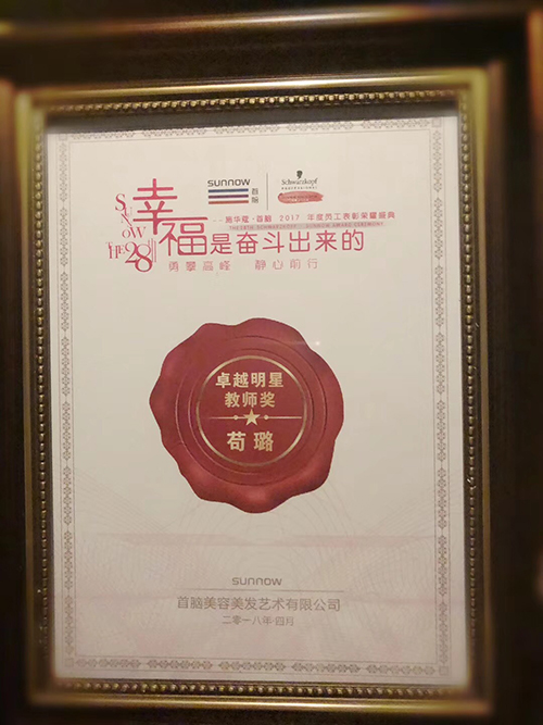 ★ 深圳首腦美容美發(fā)藝術(shù)有限公司評(píng)為優(yōu)秀教師