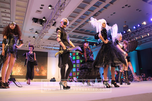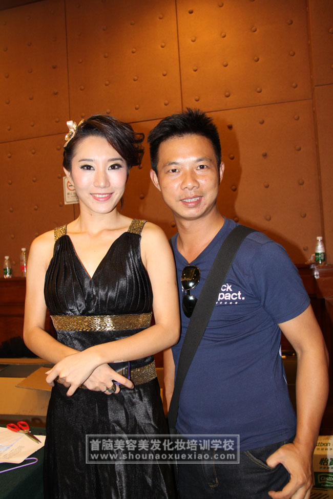 此次大賽是模特發(fā)型與造型完美融合的演繹,為大家展示了最新潮、最時(shí)尚的發(fā)型,結(jié)合著模特不同風(fēng)格的造型,體現(xiàn)的是一種別出心裁的美。有冷艷狂野型的直發(fā)系列、高貴華麗型的高聳發(fā)髻、俏皮可愛型的蝴蝶結(jié)搭配,每一款造型深刻地體現(xiàn)著設(shè)計(jì)師對(duì)時(shí)尚與美的理解和詮釋。20多款極具視覺挑戰(zhàn)性的作品獲得了評(píng)委老師的一致好評(píng),現(xiàn)場(chǎng)觀眾也給予了極為熱烈的掌聲。作為首腦學(xué)校的兩位美發(fā)造型大師,伍學(xué)廣、張軍老師所設(shè)計(jì)的作品獲得了滿堂彩。大賽結(jié)束后,南方電視臺(tái)主持人及李東田評(píng)委分別與兩位大師合影留念。