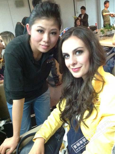 首腦資深化妝師與世模小姐親密合影留念