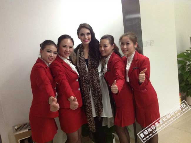 首腦化妝師學(xué)員與世模小姐快樂合影