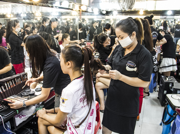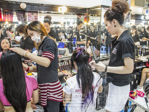 化妝造型師給世界旅游小姐做造型
