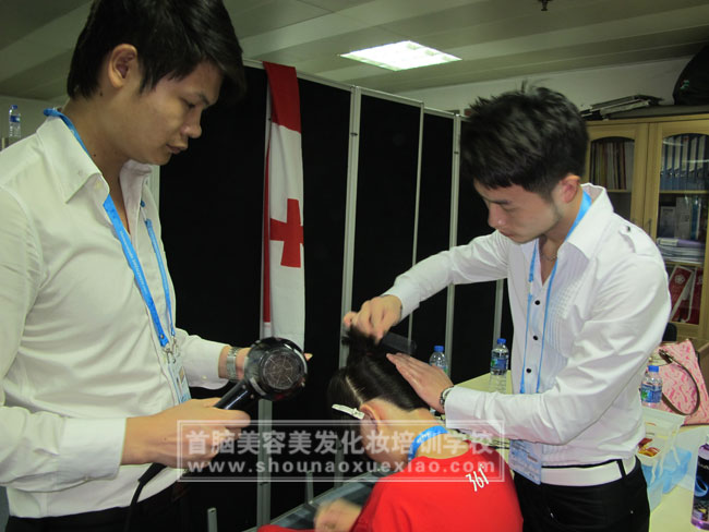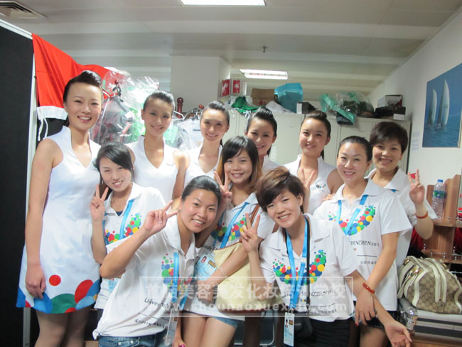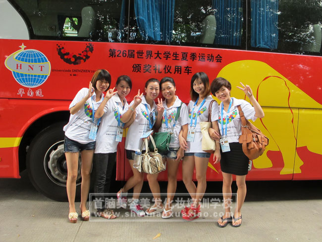 20日,在首腦學(xué)校胡卉老師的帶領(lǐng)下,一批年輕的精英化妝造型師團(tuán)隊(duì)乘坐大運(yùn)會頒獎(jiǎng)禮儀專用車開心的來到寶安游泳館,一路上他們激動的心情無法言語,能夠參加大運(yùn)會頒獎(jiǎng)禮儀化妝造型他們感到非常驕傲和自豪,在首腦學(xué)校他們留下了許多值得一生懷念的記憶。在禮儀化妝間,他們用熱情的微笑為每一位禮儀人員提供服務(wù),他們敬業(yè)精神受到了禮儀人員的高度贊揚(yáng),同時(shí)他們也結(jié)下了真摯的友誼。