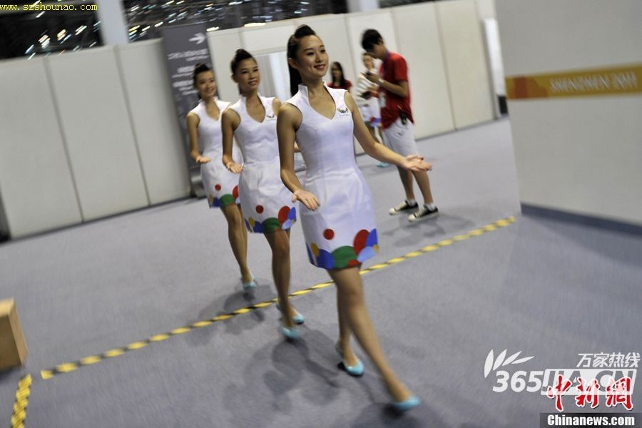 在大運(yùn)賽場上,激烈的比賽讓觀眾激情澎湃,而另一道別樣的“風(fēng)景”也同樣吸引著觀眾們的眼球——她們就是青春靚麗的禮儀小姐。從引領(lǐng)、頒獎(jiǎng)到退場,時(shí)刻保持著優(yōu)雅的姿態(tài)、美麗的形象和溫暖的微笑。有誰知道,在這份美麗背后,要付出多少辛苦和汗水? 8月15日下午,記者在大運(yùn)會(huì)深圳會(huì)展中心分賽場看見了禮儀小姐們辛勞的一個(gè)側(cè)面。在僅僅七八平方米的化妝間中,禮儀小姐們端坐在鏡前,5位化妝師緊張地為她們的造型忙碌著:制作發(fā)型,整整需要半小時(shí);而專業(yè)化妝師們從打底、撲粉到眼線、眼影,她們也要在禮儀小姐臉上忙碌超過半小時(shí)——更別提頒獎(jiǎng)儀式之間的補(bǔ)妝。禮儀小姐們一直要待到晚上全部比賽結(jié)束后才能離開。據(jù)了解,她們都是從全國各地高校中選拔而來的佼佼者。
