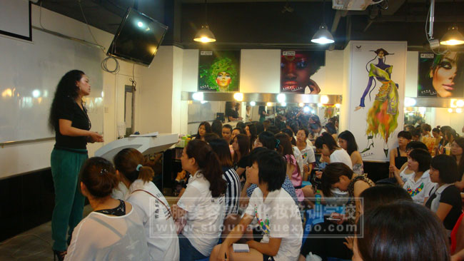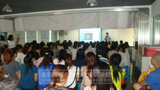 化妝造型師們在認(rèn)真的聽閆文會(huì)老師的化妝造型技術(shù)專場培訓(xùn)