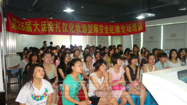 深圳市首腦美容美發(fā)化妝培訓(xùn)學(xué)校作為大運(yùn)會(huì)禮儀化妝造型供應(yīng)商,將有上百名化妝造型師陸續(xù)進(jìn)入大運(yùn)村參加300多場化妝造型活動(dòng)。為了更好的服務(wù)于大運(yùn),首腦學(xué)校分別舉行了禮儀化妝造型師安全紀(jì)律培訓(xùn)和技術(shù)標(biāo)準(zhǔn)培訓(xùn)。其中安全紀(jì)律專場是由教學(xué)主任程峰老師主講,化妝師技術(shù)標(biāo)準(zhǔn)是由形象設(shè)計(jì)部總監(jiān)閆文會(huì)老師主講。
