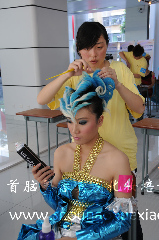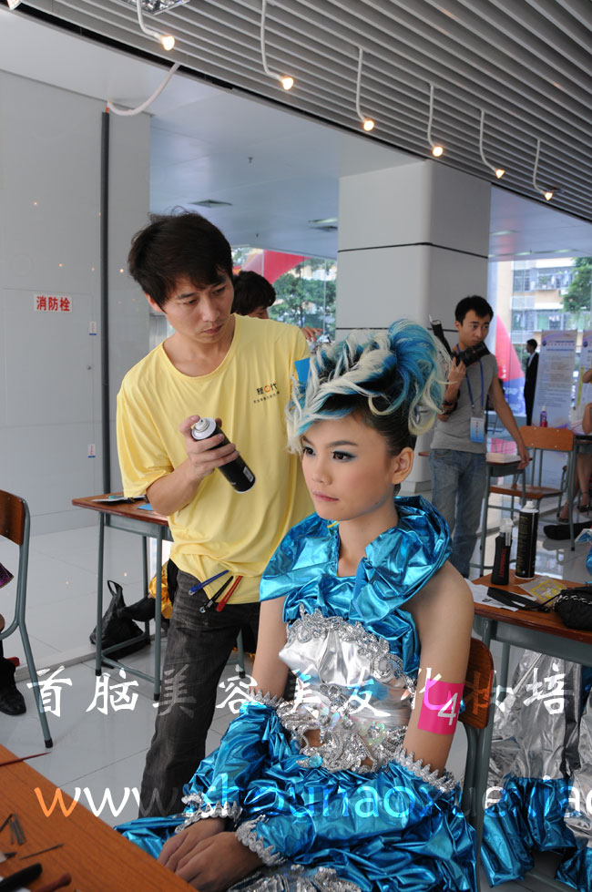 首腦學(xué)校美發(fā)張營營比賽現(xiàn)場做造型