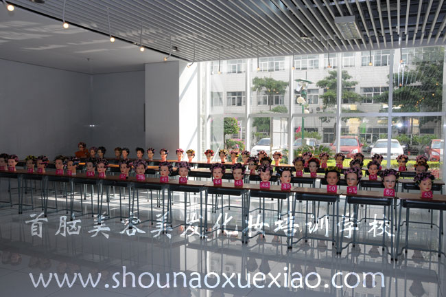 首腦學(xué)校教師班美發(fā)學(xué)員做吹風(fēng)造型