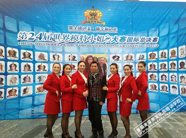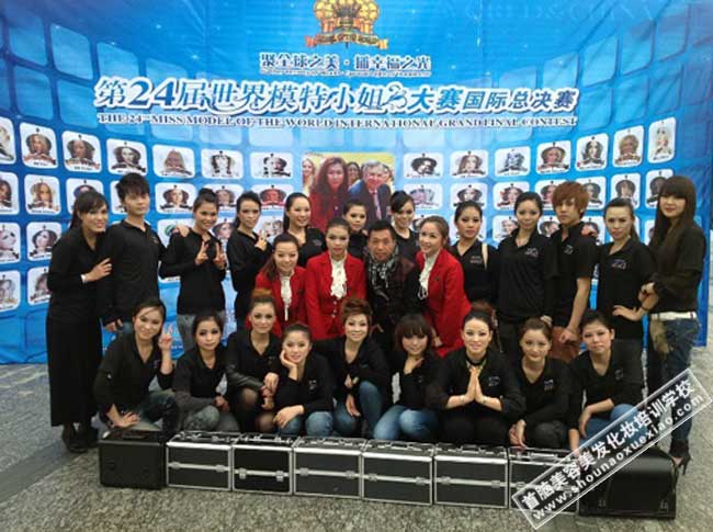 首腦化妝師學(xué)員與世模小姐快樂合影