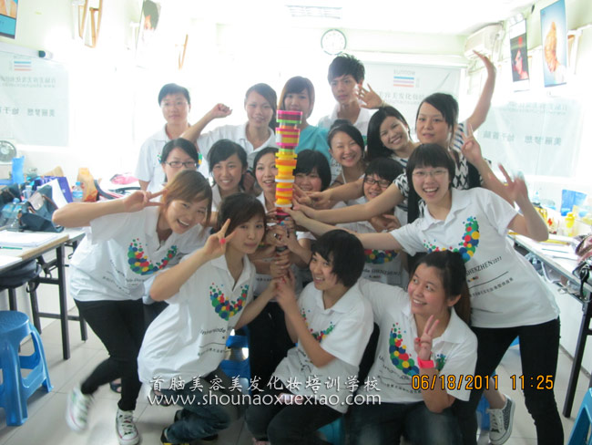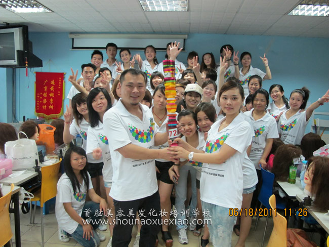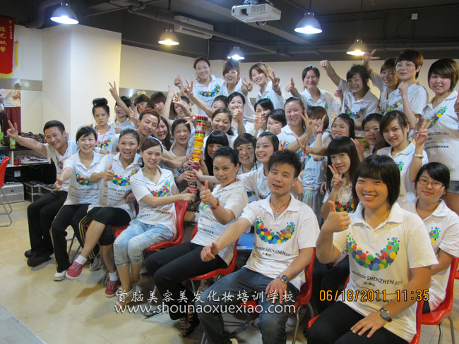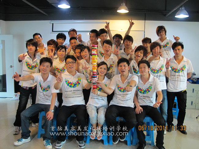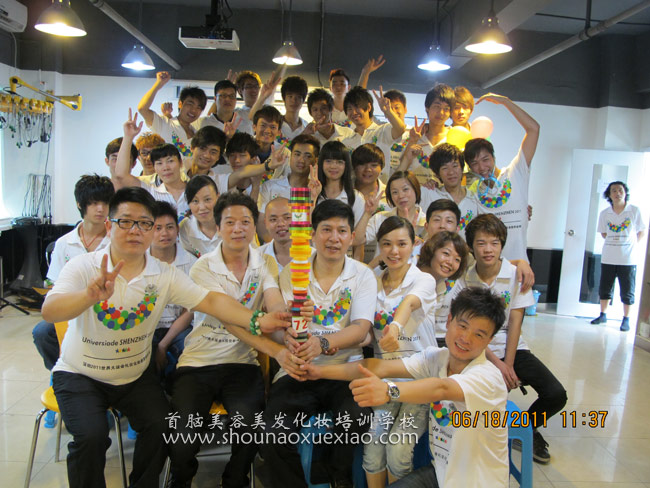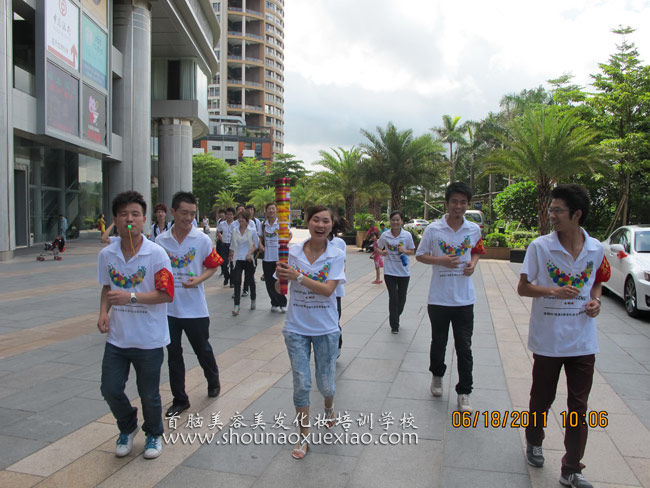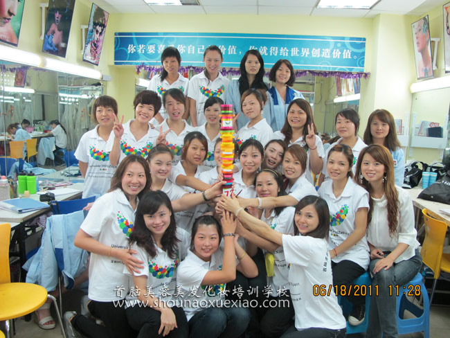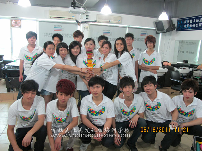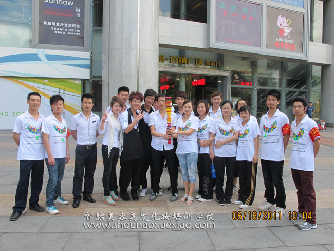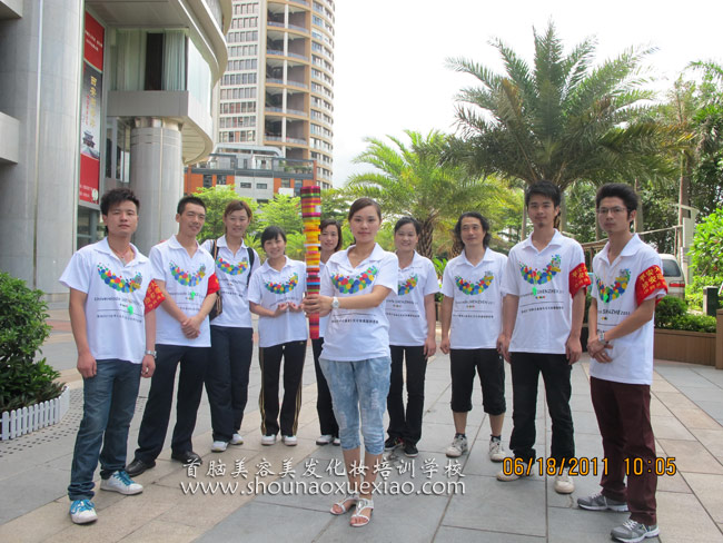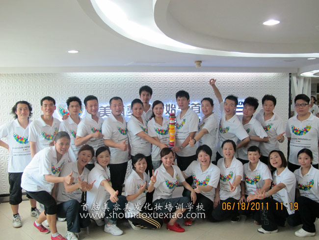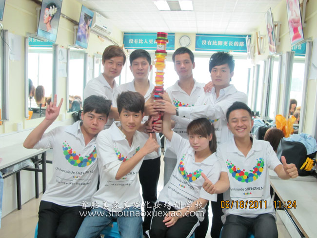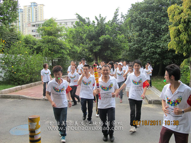 美發(fā)初級(jí)班與大運(yùn)火炬合影