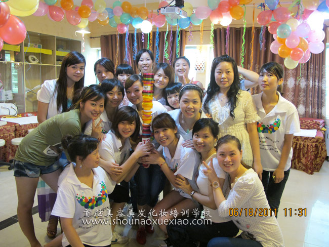 化妝初級(jí)(1)班與大運(yùn)火炬合影
