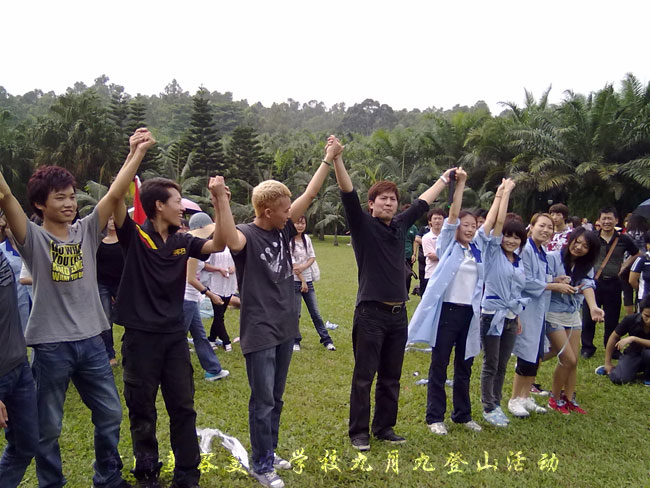 首腦學(xué)校Angel校長指出,這次登高活動意指我們更上一層樓,每一位同學(xué)要更上一層樓,首腦學(xué)校也更上一層樓。教務(wù)部長程老師也對登上注意事項作了詳細(xì)的報告。此時,同學(xué)們已是激動不已,躍躍欲試,盼望著快點(diǎn)開始登上山頂,驕陽擋不住他們的熱情。在校領(lǐng)導(dǎo)的帶領(lǐng)下,以校旗為標(biāo)志的大步隊快速而整齊的向蓮花山山頂進(jìn)發(fā)。一路上同學(xué)們熱情歡笑、互相幫助、攜手向前,把激情和快樂傳遞給了路途中每一位游客,體現(xiàn)了他們團(tuán)結(jié)友愛、積極向上的班風(fēng)。在大家的共同努力下,師生紛紛到達(dá)了山頂,為了紀(jì)念這一激動地時刻,同學(xué)們紛紛合影留念。汗水掩蓋不了他們臉上可愛的笑容,凝望著高高在上的鄧小平畫像,美麗的畫面在此刻定格。