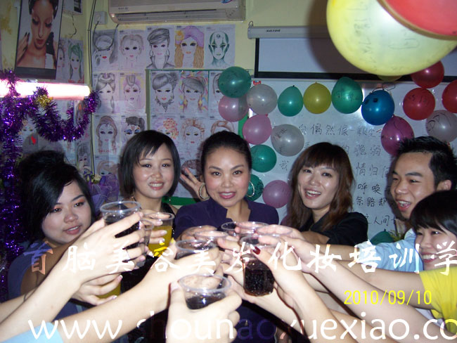 化妝班閆老師和學(xué)生們共舉杯歡慶教師節(jié)