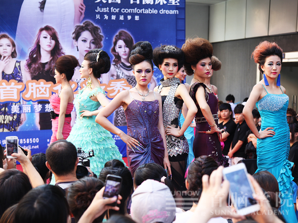 這次的時尚秀,南山校區(qū)的師生們花了很長的時間去準備,作品從構(gòu)思設計、到選材制作、再到模特試裝、修改、定型,舞蹈的一些排練、服裝的搭配等等,作好充分準備只為今天展示首腦的時尚風采。