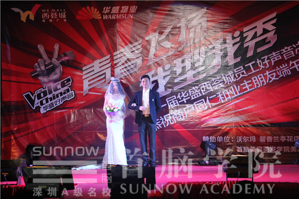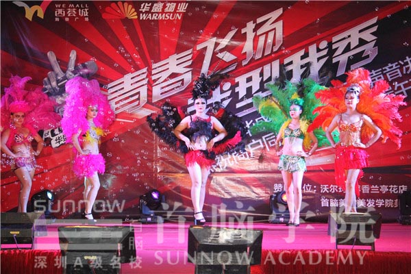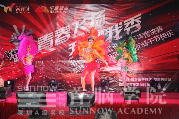 這種美不是張藝謀的電影,也不是泰戈?duì)柕脑?shī)歌,它是來(lái)自首腦學(xué)院沙井校區(qū)化妝班師生的傾心力作——新娘造型秀和桑巴造型秀。此次,首腦學(xué)院受主辦方西薈城廣場(chǎng)華盛物業(yè)邀請(qǐng),參加了由沃爾瑪、圣雅思等單位贊助的這次 “華盛好聲音”歌唱晚會(huì),為主持人和演員提供化妝、造型等方面的服務(wù),并為晚會(huì)帶了新娘造型秀和桑巴造型秀這兩個(gè)節(jié)目。雖然朱寧?kù)o老師和陳瑩老師帶領(lǐng)學(xué)生只花幾天的時(shí)間來(lái)準(zhǔn)備這兩節(jié)目,但是最終呈現(xiàn)出來(lái)的效果無(wú)不讓人驚嘆。熱情似火的現(xiàn)場(chǎng),唯美的新娘,火辣的桑巴,在美妙動(dòng)聽(tīng)的音樂(lè)聲中,隨著音樂(lè)的律動(dòng)和炫目的燈光,舞臺(tái)上呈現(xiàn)出的美麗畫(huà)面,讓所有的觀眾都如癡如醉。
