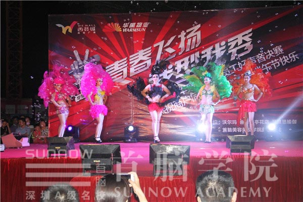 首腦學(xué)院沙井校區(qū)奉獻(xiàn)的這兩個(gè)節(jié)目,給此次西薈城廣場(chǎng)的華盛好聲音歌唱晚會(huì)的觀眾帶來(lái)了巨大的驚喜,也讓首腦學(xué)院化妝班的學(xué)子成為了舞臺(tái)上最為閃耀的星星!其實(shí)除了化妝班,這次活動(dòng)還有部分美容班和美發(fā)班的學(xué)生參與,他們也為次活動(dòng)付出了辛勤的汗水;還有市場(chǎng)中心王總監(jiān)、劉秋燕老師、美容王琦老師、美發(fā)卿寶蓮老師等學(xué)院的許多工作人員都對(duì)這次多動(dòng)給予了大力支持!