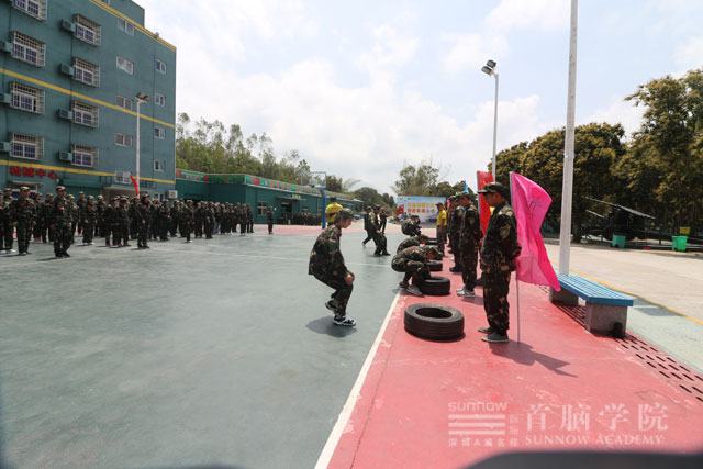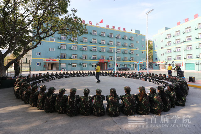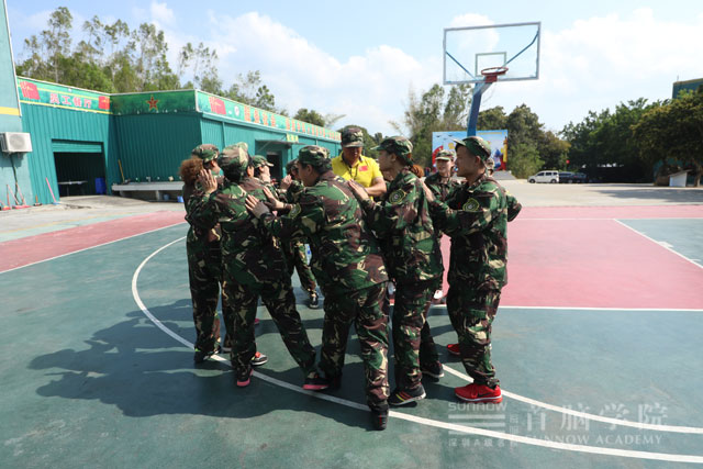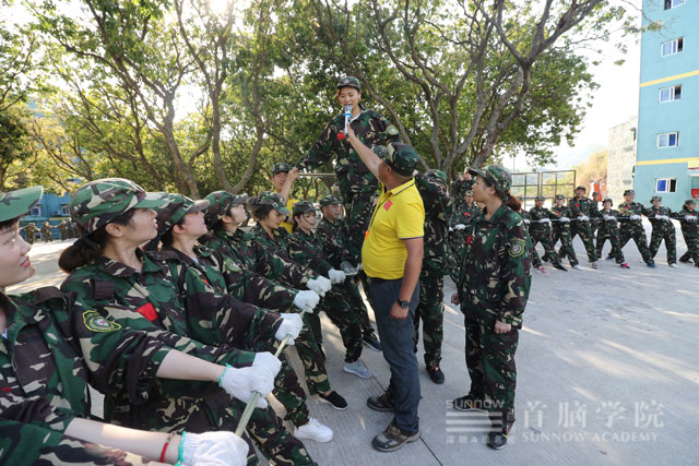 早上10時(shí),首腦學(xué)院全體員工到達(dá)訓(xùn)練基地,立刻進(jìn)入武裝狀態(tài)。全身的迷彩,讓所有員工打起精神,跟上腳步,展現(xiàn)出軍人的颯颯英姿。