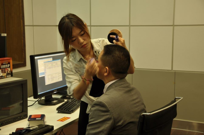 走進(jìn)《法觀天下》欄目工作室,我們會詫異工作室的干凈、簡潔。工作室里面除了一些必要的錄音、錄像設(shè)備外,就剩下了一張放了電腦的桌子,桌子只放了一本“引人注目”的現(xiàn)代漢語詞典。說話的時候語句中帶有語病,或者用錯詞語,本是“人之常情”。然而主持人就不一樣了,即使像朱文豐這樣的資深主持也有怕“說錯話”的時候。朱文豐是專業(yè)負(fù)責(zé)的主持人,為他做美發(fā)化妝造型的首腦學(xué)院的老師也是一樣。他們不僅要根據(jù)主持人的自身特點(diǎn)來設(shè)計造型,還要考慮節(jié)目和觀眾的需求。如果形容著名主持人朱文豐說話是滴水不漏的話,那么我們首腦學(xué)院的造型師做造型就是無懈可擊。