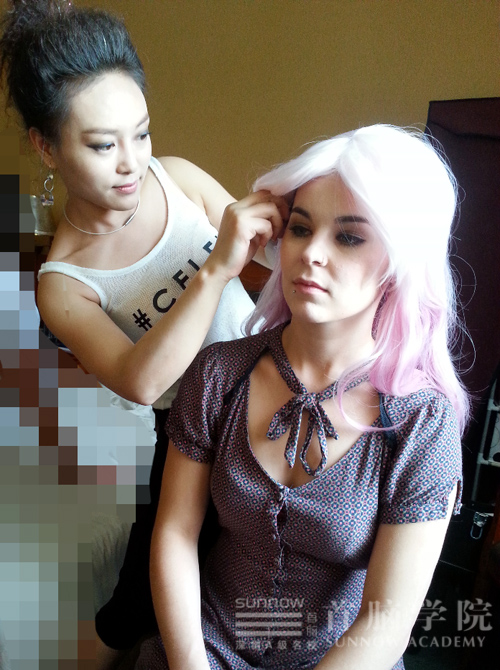 這次視聽秀《極·力道》拍攝的是“夏娃、亞當(dāng)”的經(jīng)典片斷,化妝師們要根據(jù)人物的形象特征來做造型,雖然有一定的難度,但對(duì)于首腦學(xué)院南山校區(qū)的化妝團(tuán)隊(duì)來說,“這都不是事兒”,因?yàn)樗齻兪怯袀涠鴣淼?,在學(xué)校老師會(huì)教于她們各種不同人物形象的造型,在老師們的技術(shù)指導(dǎo)下,化妝造型技術(shù)日日漸長,所以這對(duì)她們來說并不難,這正好是她們施展化妝造型技術(shù)的大好機(jī)會(huì)。