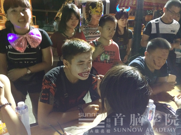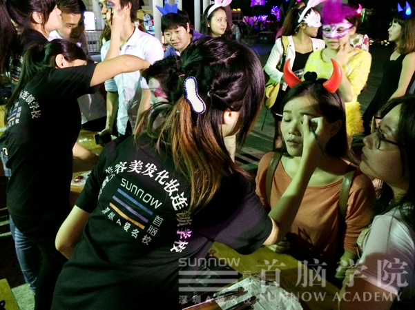 在10月27日至11月5日,由首腦學(xué)院南山校區(qū)的化妝造型團隊,為世界之窗的“萬圣節(jié)鬼妝活動”助陣,期間由蔣莉莉、楊金燕、文堯、楊興艷、雷婭等幾位老師帶隊,與數(shù)十名化妝團隊的學(xué)員為世界之窗工作人員和游客打造獨特驚悚、詭異造型。參與的學(xué)員和老師均表現(xiàn)出了很高的積極性,時刻嚴格要求自己形象、行為及化妝技術(shù),得到了主辦方的一度好評。