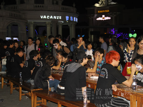 在2014年11月13日到11月16日,在個時間段里,由首腦學院沙井校區(qū)負責派出優(yōu)秀的化妝團隊。沙井校區(qū)的化妝團隊都非常有責任心,打造的鬼妝,游客們都非常滿意。