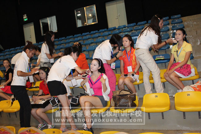 首腦學(xué)校的化妝師們同樣以她們最美麗的微笑和最精湛的技術(shù)服務(wù)于大運(yùn)、服務(wù)于那些美麗的天使;她們在后臺精心設(shè)計、默默的為舞臺上的美麗貢獻(xiàn)自己的力量,讓選手向世界人民展示著深圳最美麗的微笑。
