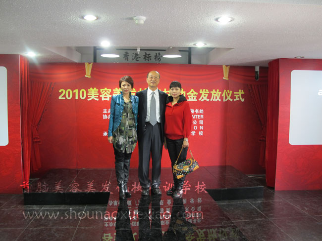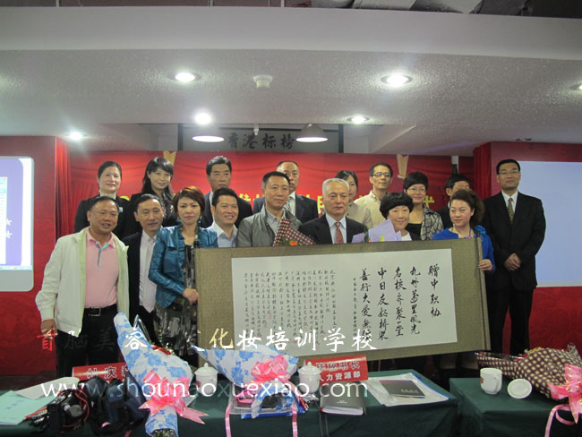 高穎董事長(zhǎng),韙校長(zhǎng)與日本友人扶助金發(fā)放企業(yè)代表板本直規(guī)先生合影