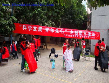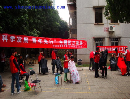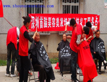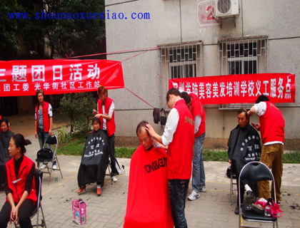 為慶祝2008年12月5日“國際義工日”的到來,首腦美容美發(fā)培訓(xùn)學(xué)校聯(lián)合沙河團(tuán)工委聯(lián)合組織“科學(xué)發(fā)展,青年先行”活動(dòng),我校美發(fā)高級班21人義工隊(duì)到華橋城社區(qū)為近百名社區(qū)老人免費(fèi)美發(fā),得到了轄區(qū)居民的熱烈歡迎,并對我們的服務(wù)給予了很高的肯定。下面是活動(dòng)場景:
