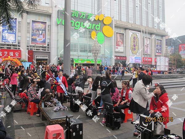 龍華華潤萬家商業(yè)廣場距首腦學(xué)院龍華校區(qū)不過百步之遙,這里是首腦義工隊(duì)常常“光顧”的地方,繁華的廣場人來人往、川流不息。這一天早晨,首腦學(xué)院龍華校區(qū)美發(fā)高級(jí)班,化妝高級(jí)班,美容高級(jí)班的義工隊(duì)員們?cè)诎嘀魅蔚膸ьI(lǐng)下就來到華潤萬家商業(yè)廣場,拉好橫幅,擺好桌椅,為這天的義工服務(wù)做好了充分的準(zhǔn)備。