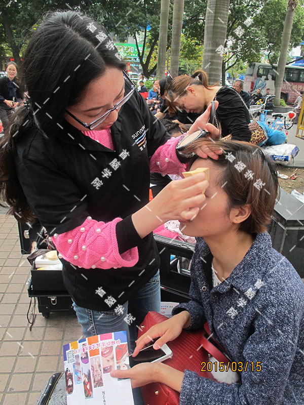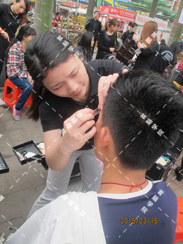 首腦學(xué)院龍華校區(qū)化妝學(xué)員為市民化妝