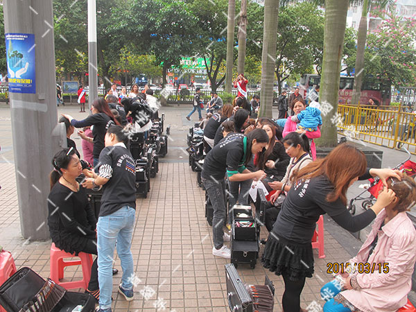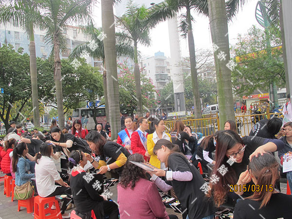 一眨眼功夫,義工們的便開始忙碌起來,前來剪發(fā)、化妝,美容的人越來越多,盡管大家很忙碌,但義工們還是本著真誠,熱情的態(tài)度,周到服務(wù),照顧好每一位“顧客”。為市民認(rèn)真的剪發(fā),化妝,美容,看著“顧客”們的笑容,學(xué)員們也為自己的"成果"感到欣慰——既幫助了他人,又讓自己獲得了更多的實(shí)習(xí)機(jī)會(huì),提高了自己的技術(shù)水平。