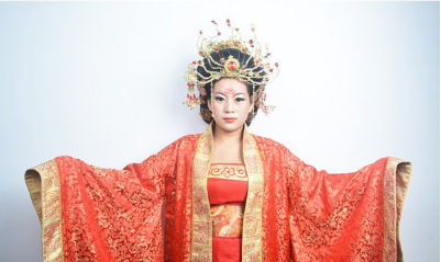 唐妝的妝面:大氣,艷麗,以線條為主,顏色桃紅,整體顯得嫵媚動人即可。