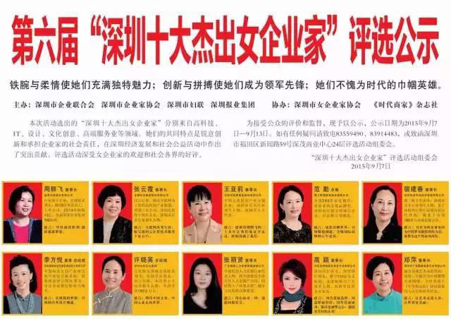 “深圳十大杰出女企業(yè)家”的評選活動自創(chuàng)辦以來,至今已歷七屆,旨在向全社會宣傳和展示深圳市女企業(yè)家的獨特風(fēng)采,弘揚(yáng)女企業(yè)家們奮力拼搏、勇于創(chuàng)新的精神,表彰她們?yōu)樯钲诮?jīng)濟(jì)和社會發(fā)展建功立業(yè)所作出的貢獻(xiàn)。在此前的評選中,高穎董事長以卓越的社會貢獻(xiàn)及斐然的商業(yè)成績,一舉榮獲第六屆“深圳十大杰出女企業(yè)家”稱號,成為美業(yè)行業(yè)的標(biāo)桿企業(yè)代表。她,是砥礪奮進(jìn)在新時代、新征程上的女性典范,是活躍在深圳市經(jīng)濟(jì)領(lǐng)域里的先鋒人物。