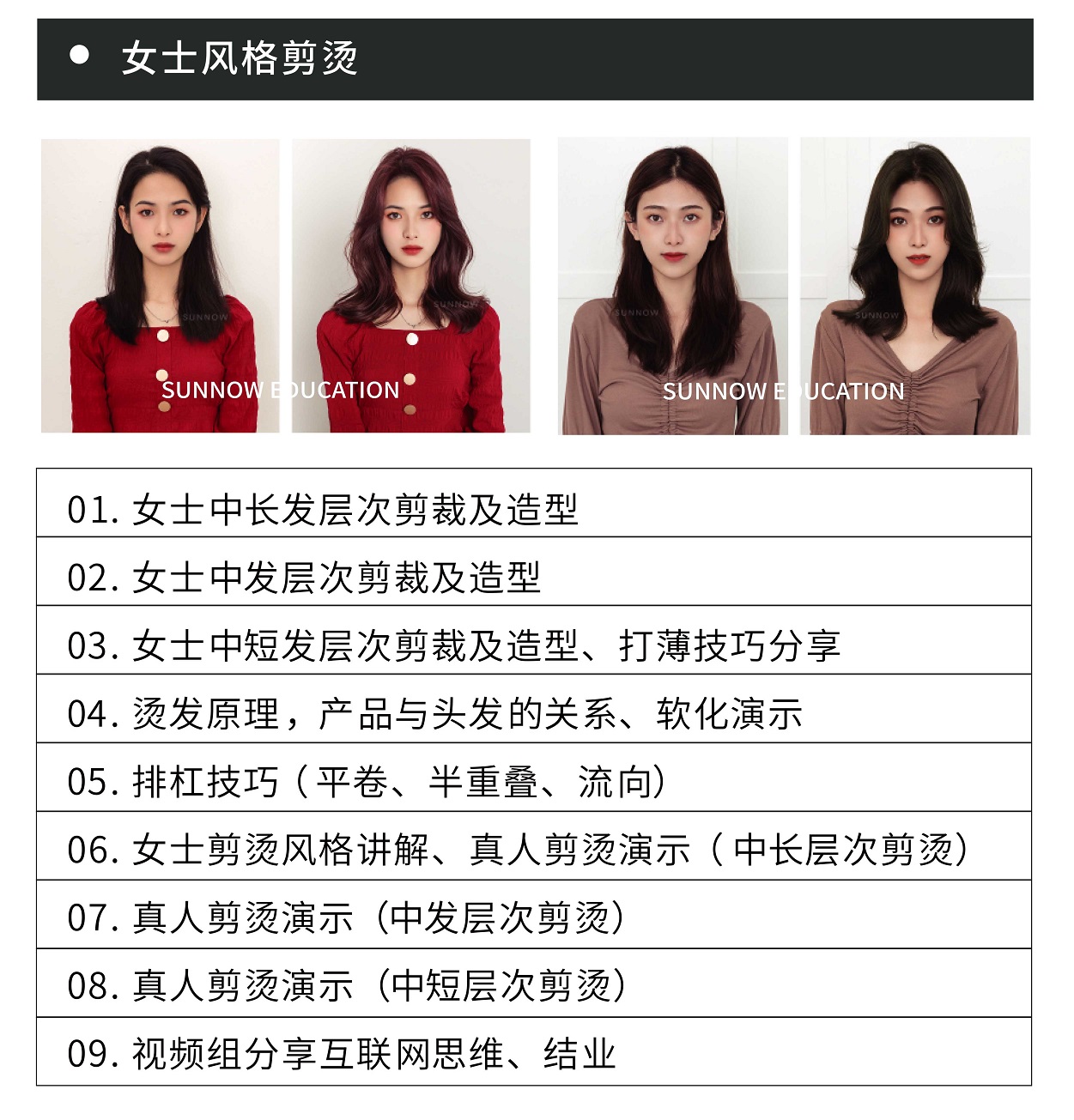 針對深造班、綜合提升班,專業(yè)、系統(tǒng)培訓(xùn)達到專業(yè)優(yōu)秀發(fā)型師標準,培養(yǎng)專業(yè)美發(fā)技能人才。循環(huán)授課,隨到隨學(xué),手把手個性化教學(xué)