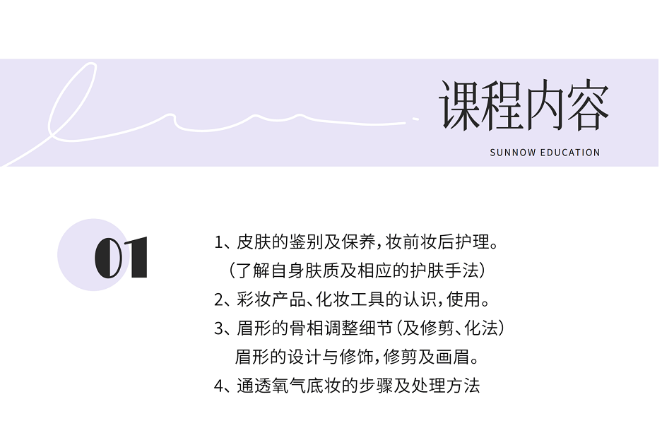 自我化妝設計、訓練國際標準職業(yè)素養(yǎng)以及良好的職業(yè)道德,掌握化妝的基礎技能和相關的理論知識,能夠根據個人特點并按照生活中所遇到的不同場合進行妝容設計并能夠熟練操作,為下一階段學習打下良好的基礎