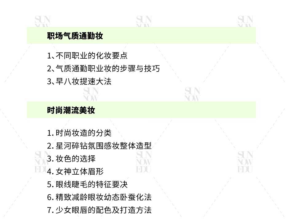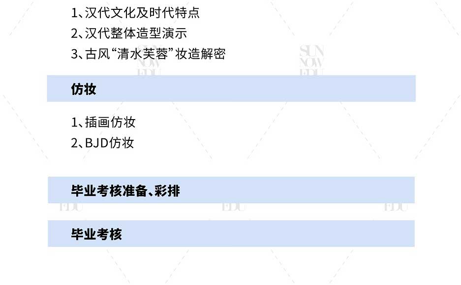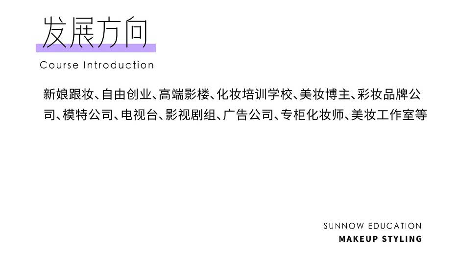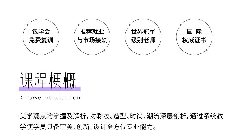 通過系統(tǒng)專業(yè)的課程設計使學員具備全面的美妝技能和市場技巧,有創(chuàng)新思維能力,以及潮流時尚的審美能力,成為符合市場需求的專業(yè)精英化妝師。