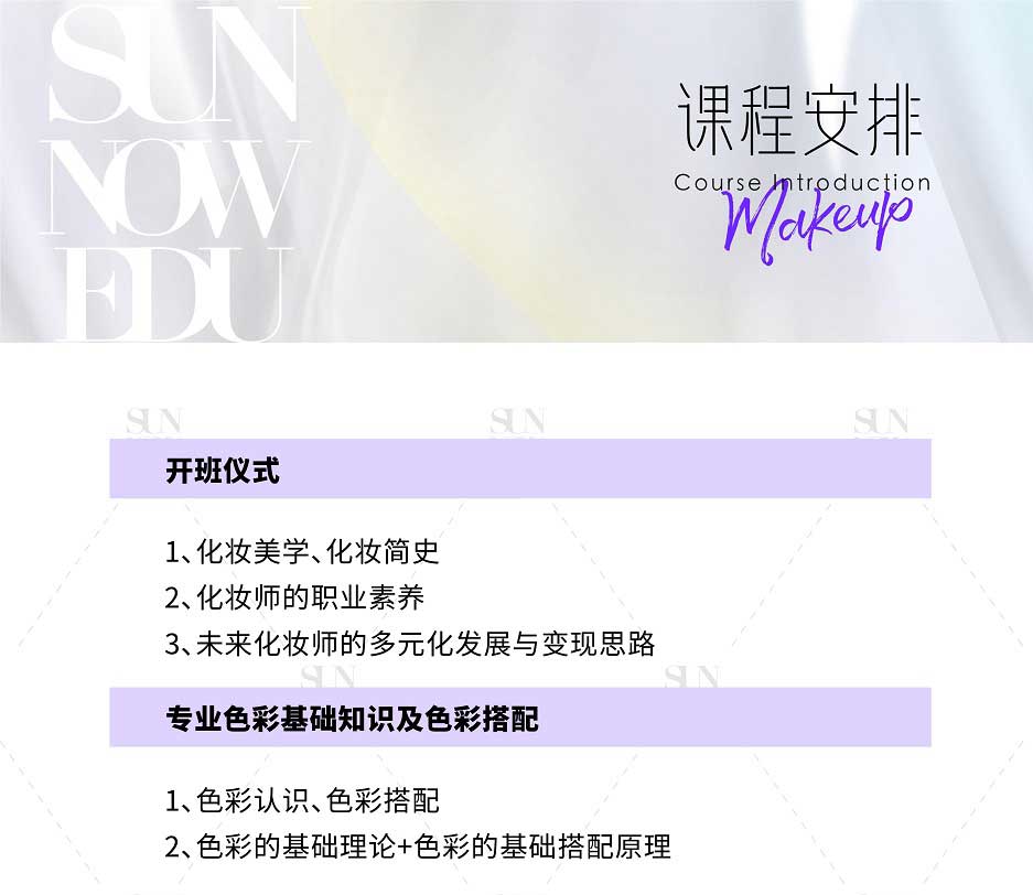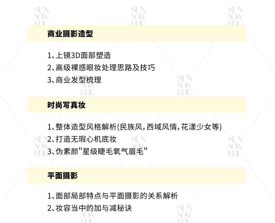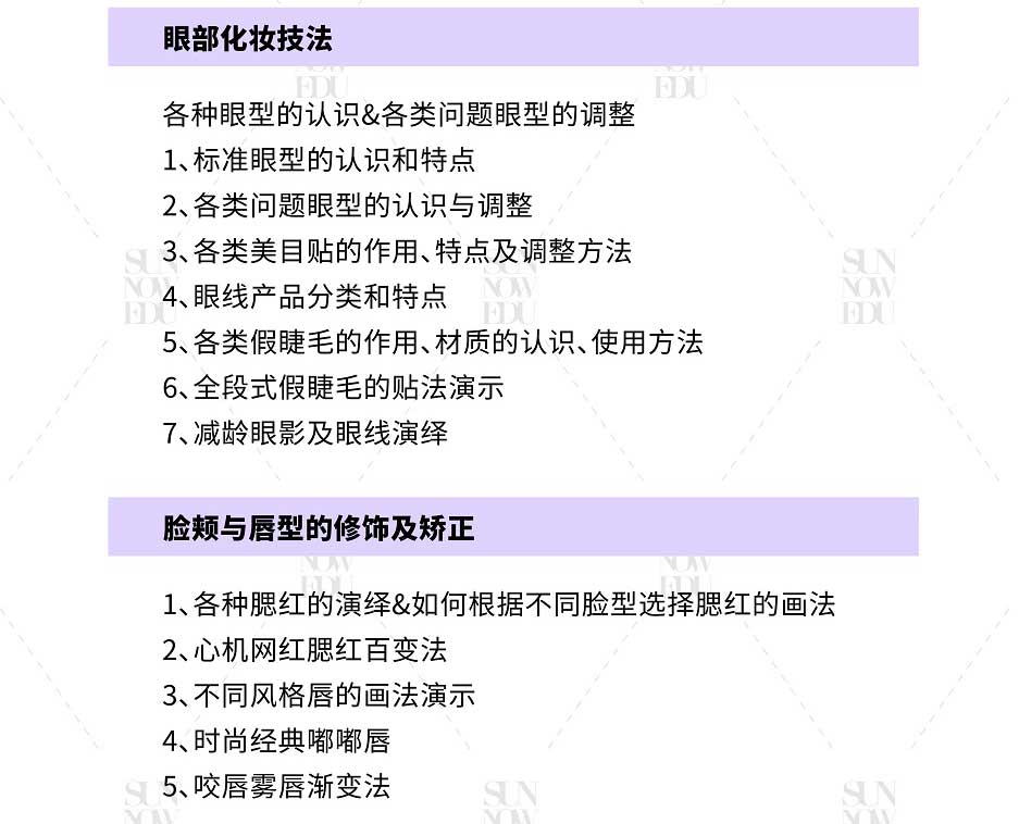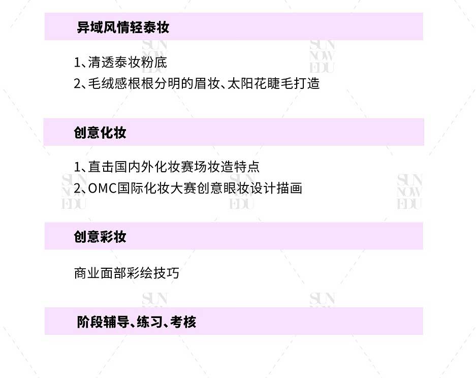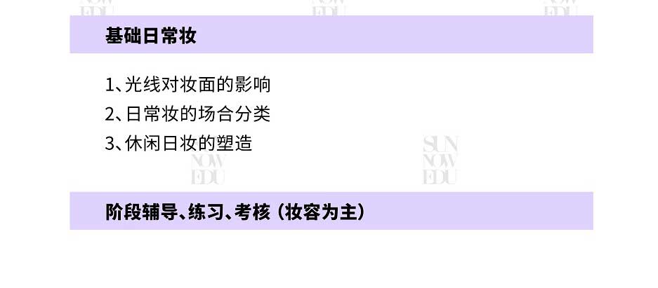 課程適用于零基礎、基礎薄弱化妝師、未接受過專系統(tǒng)培訓的化妝造型從業(yè)者、美妝愛好者、行業(yè)全能化妝造型師的高配置課程班型,融合首腦專研課程體系,旨在發(fā)掘并培養(yǎng)學員的專業(yè)全能綜合能力素質(zhì)。
