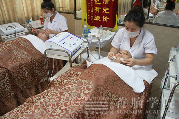 在首腦學(xué)院龍華校區(qū)的美容師考試現(xiàn)場,考評員不僅需要考核學(xué)員的美容手法,連學(xué)員的服飾、坐姿、身體語言都有劃入評分范圍。美容師“一試三證”的考生們不僅要穿白大褂、戴白口罩,所用的毛巾也是干凈整潔的白毛巾。其衛(wèi)生要求幾近一塵不染??荚u員會清查考生的物品擺放、美容服務(wù)等細節(jié)。之后,考評員還會考核語言表達是否清晰流暢以及美容專業(yè)用語的使用。