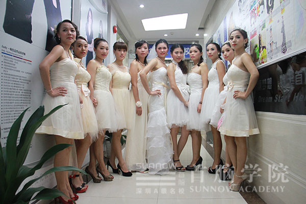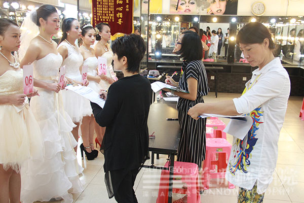 考生正在給模特化妝